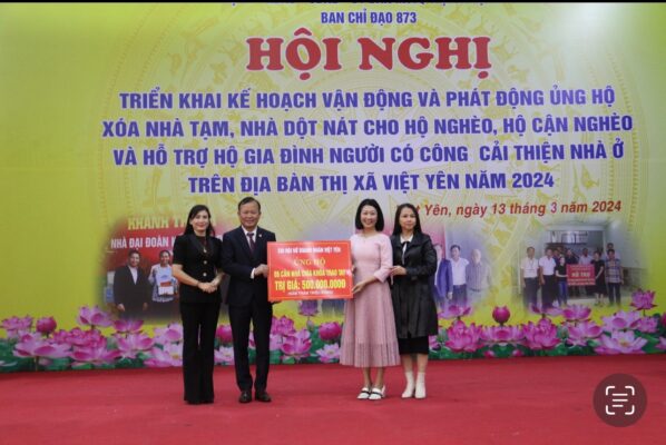 Chi hội Nữ Doanh nhân thị xã Việt Yên được khen về thành tích xoá nhà dột nát cho hộ nghèo