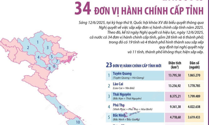 Cả nước có 34 đơn vị hành chính cấp tỉnh